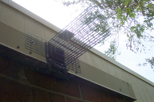 This one-way door, like the trap in the photo to the left, lets them all get out, but not back in. It's a lot easier to install this than deal with killing them!